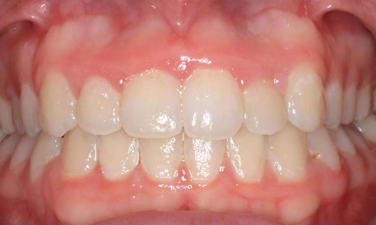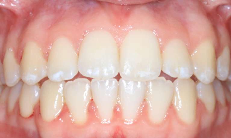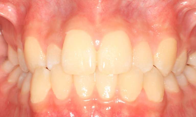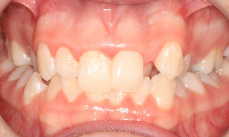 Our patient was 17 year old female who visited our dental clinic because she was unhappy with the appearance of her front teeth due to significant crowding and protrusion.
