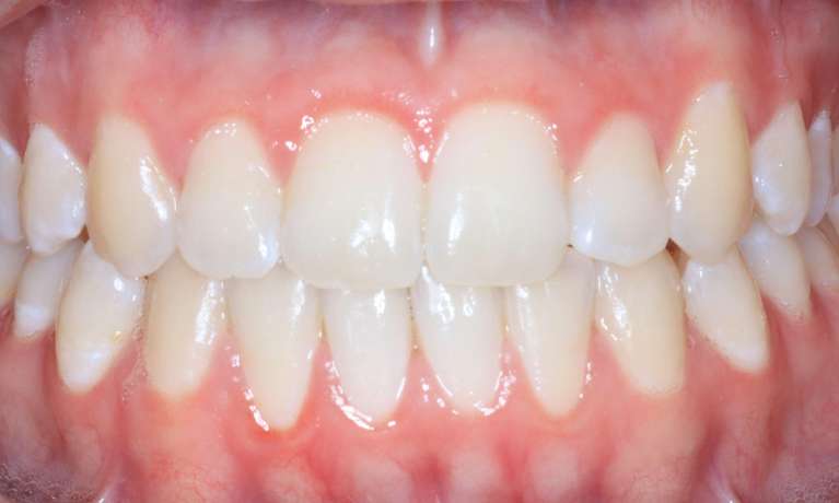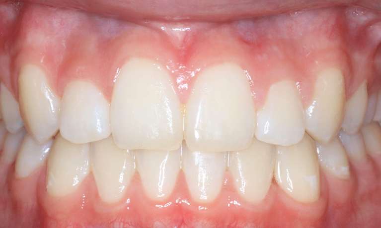 The treatment involved the use of traditional fixed braces in combination with the extraction of two teeth in her top jaw. This was done to create space for alignment and retraction of her top front teeth which led to a pleasing outcome and a favorable bite. A 19-month treatment period.