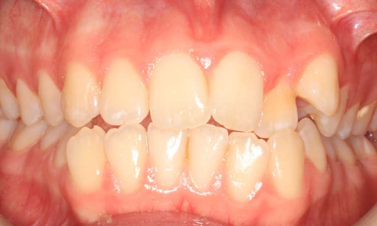 A 13 year old female who was unhappy with the appearance of her front teeth as they were crooked and caused a misalignment of her deep bite. At Markham Street Dental, traditional braces were used to align the teeth and correct her deep bite. This dental treatment took about 12 months from start to finish and the dental patient was thrilled with the results.