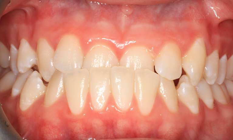 This young patient was experiencing crowding, a crossbite, and a deep bite which were corrected using fixed braces, gradually aligning the teeth and improving the bite for a more balanced smile.
